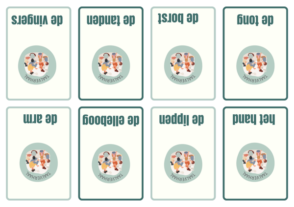 Voorkant is het lichaamsdeel, achterkant is het woordbeeld
